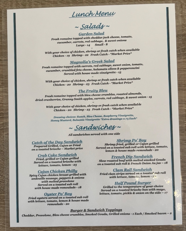 Highlights include the renowned Crabcake Sandwich, celebrated for its generous lumps of crab without fillers, adding a touch of elegance with Cajun spices and their secret Magnolia sauce. Diners rave about the fried Cod, a must-try, as well as the chicken chimichurri, which can be tailored for dietary needs.